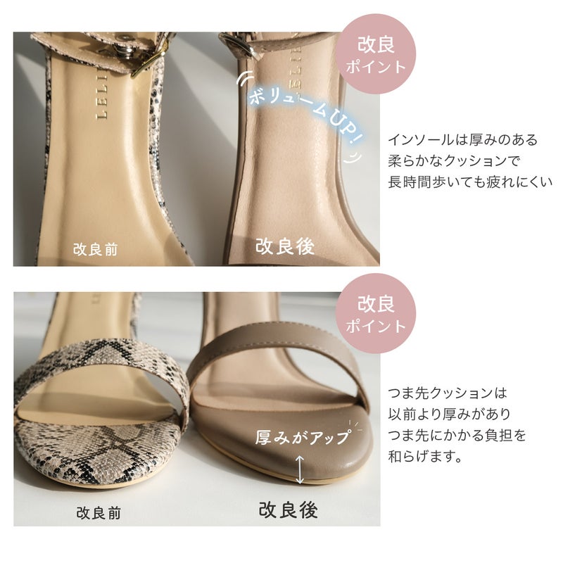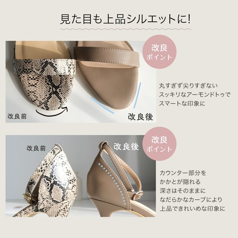 履き心地の良さをUPさせ、さらに今っぽさも感じられるデザインに新改良。どんなコーディネートにも合わせやすい、女性らしさを引き出す華奢でシンプルなデザイン。