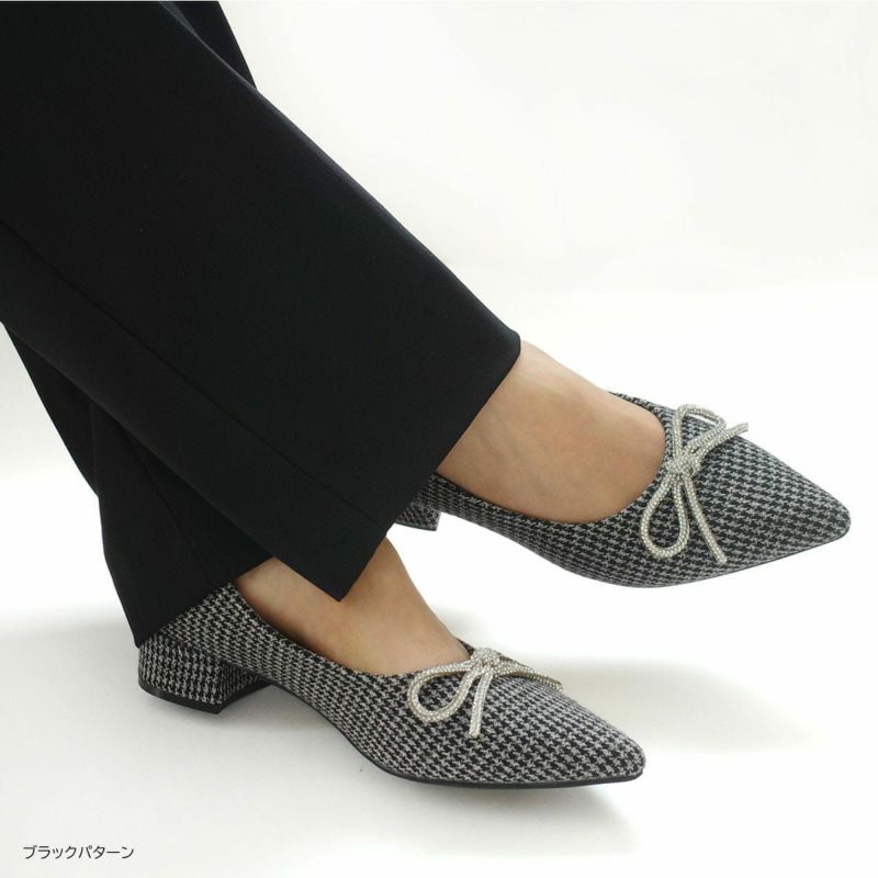 ラインストーンリボンポインテッドトゥパンプスバレエパンプス レディース