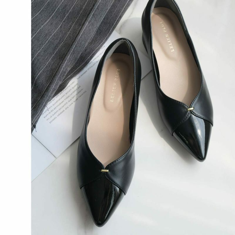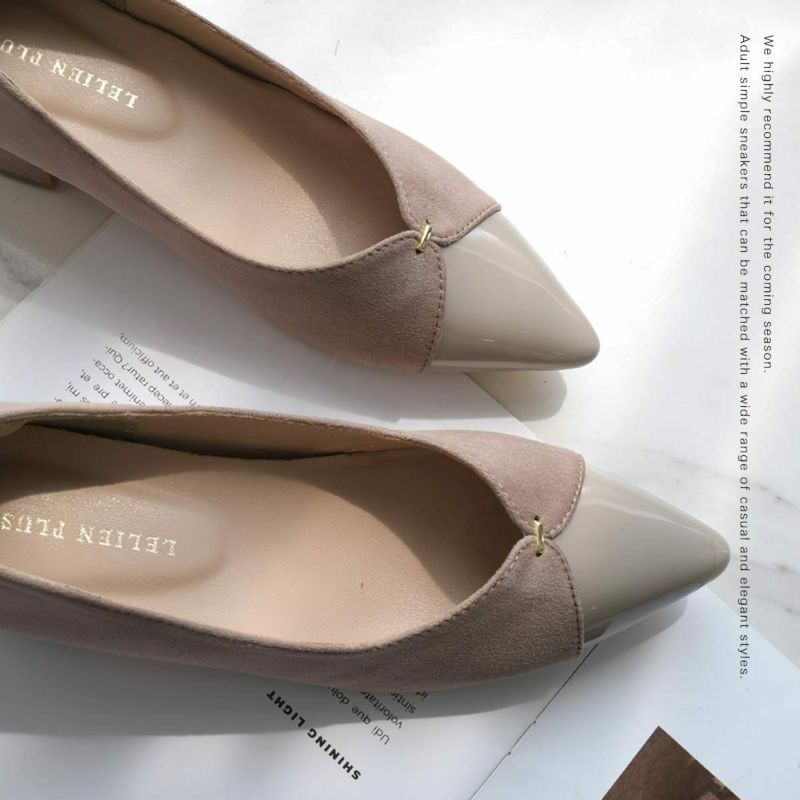 つま先の切り替えデザインがポイントの、エレガントなパンプス