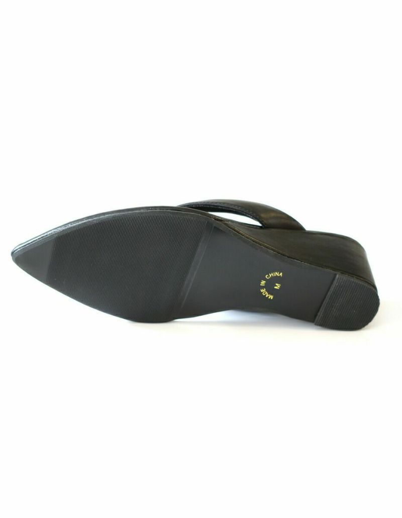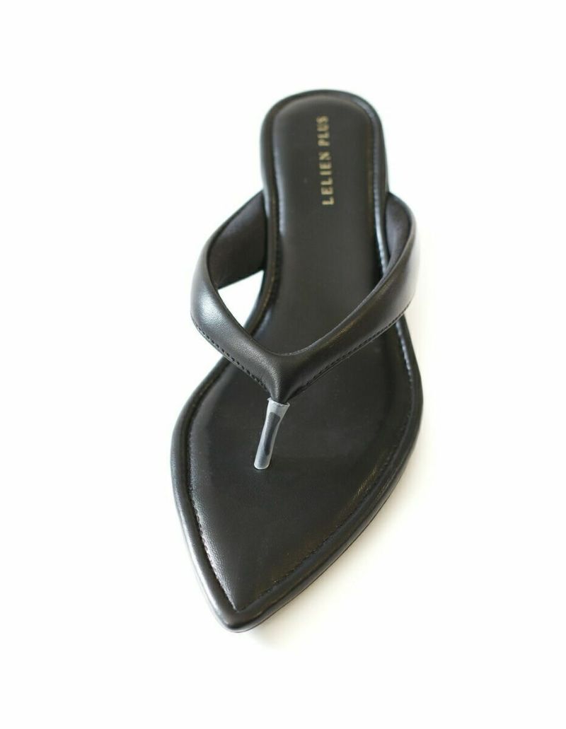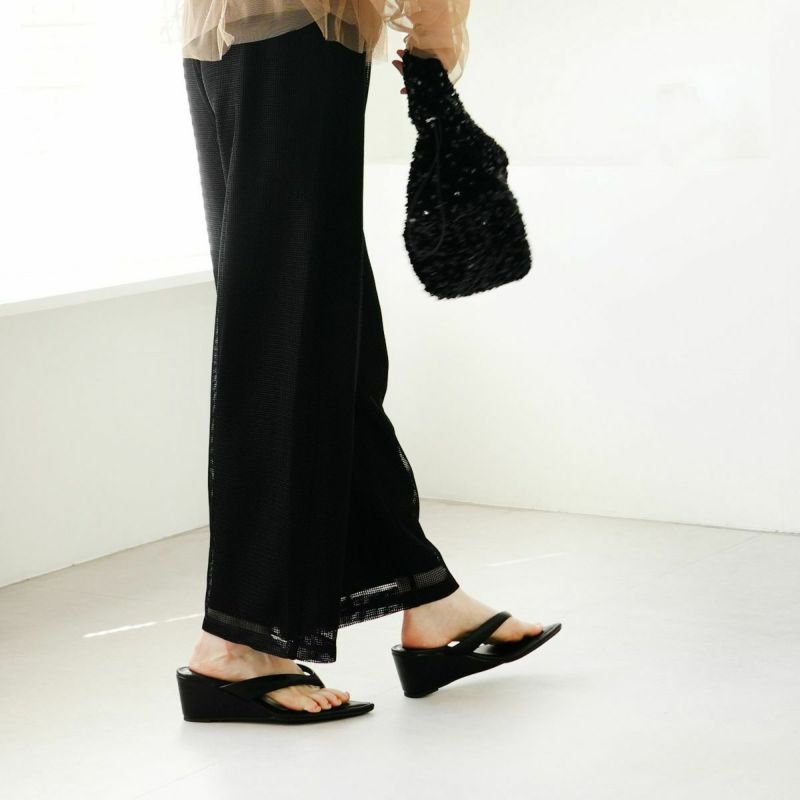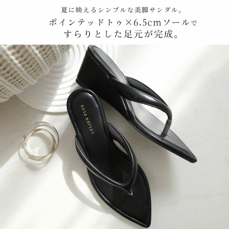 ポインテッドトゥ×6.5cmソールですらりとした足元が完成。ふっくらとしたクッション付きトングは