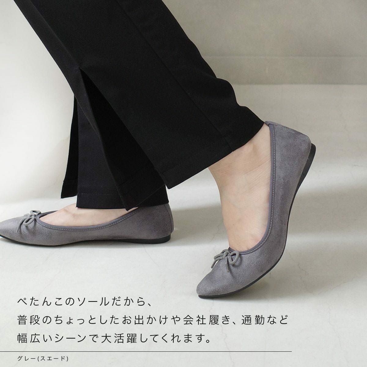 どんなスタイルにも合わせやすいバレエシューズ。