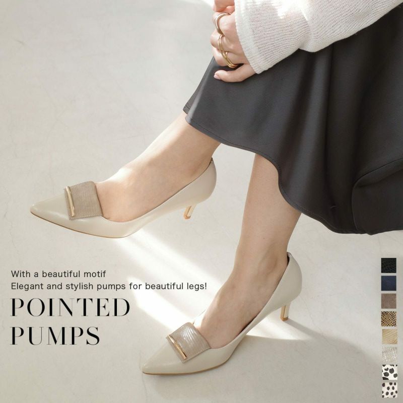 甲に、キレイ目モチーフを施した上品ポインテッドトゥパンプス