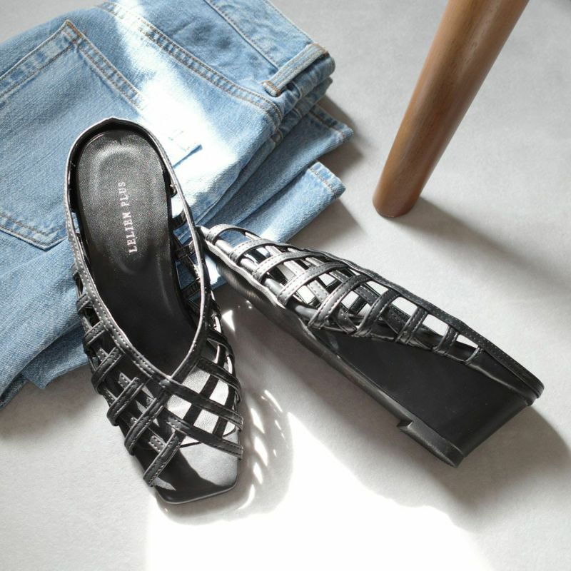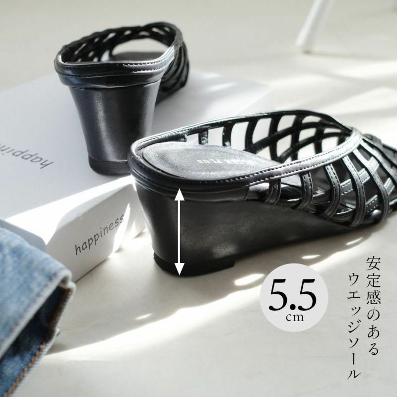 安定感のあるウエッジソールで歩きやすくで楽ちんな履き心地。ミュールサンダルタイプでさっと履けるのでノンストレス
