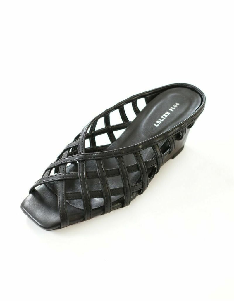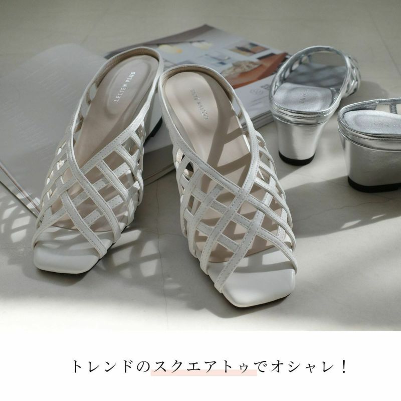【在庫限り!特別価格!】スクエアトゥウエッジサンダルミュール レディース