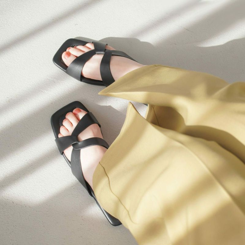 トレンドのスクエアトゥを取り入れたおしゃれなフラットサンダル