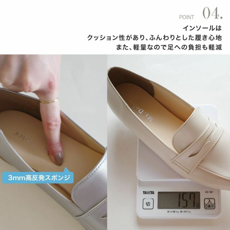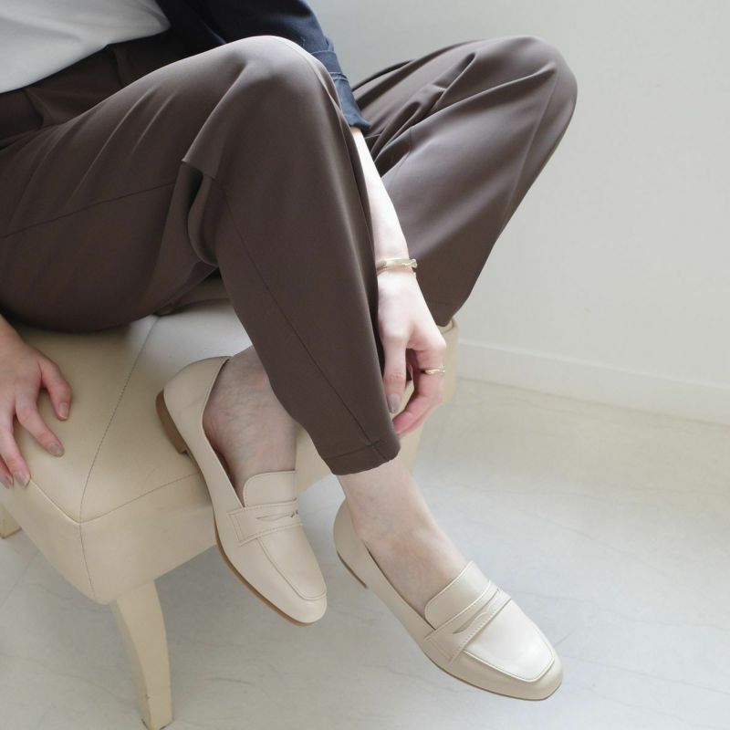 足に負担のかからない心地いい高さのローヒールは長時間履いても疲れにくい。