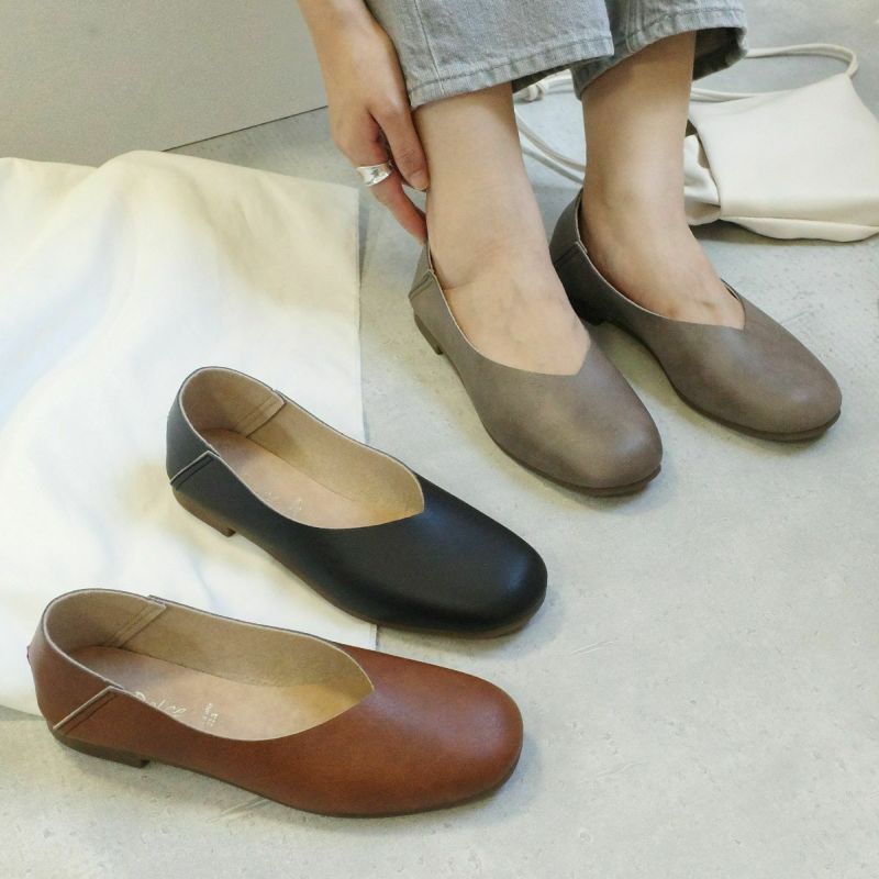 シンプルなデザインでデイリーに使いやすく、履き口のVカットで垢抜けた印象へ。