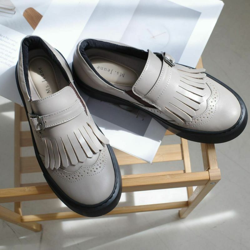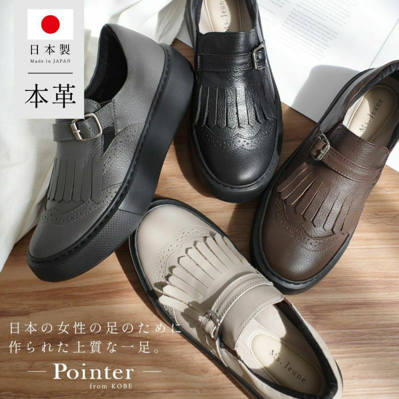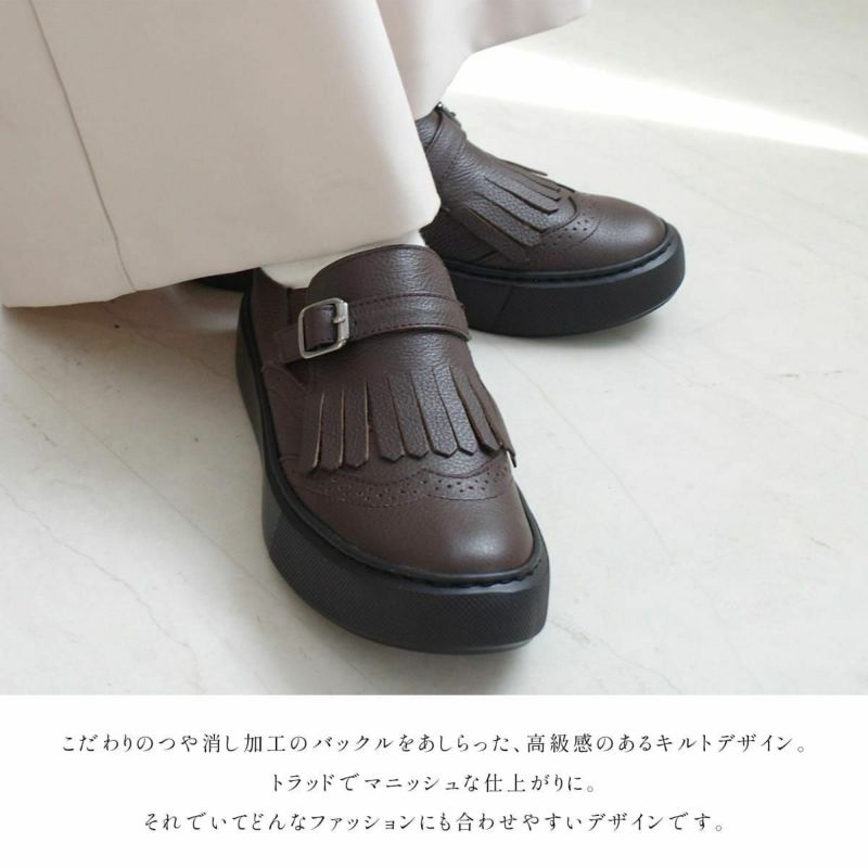 本革フリンジ付きスリッポン厚底ローファー レディース
