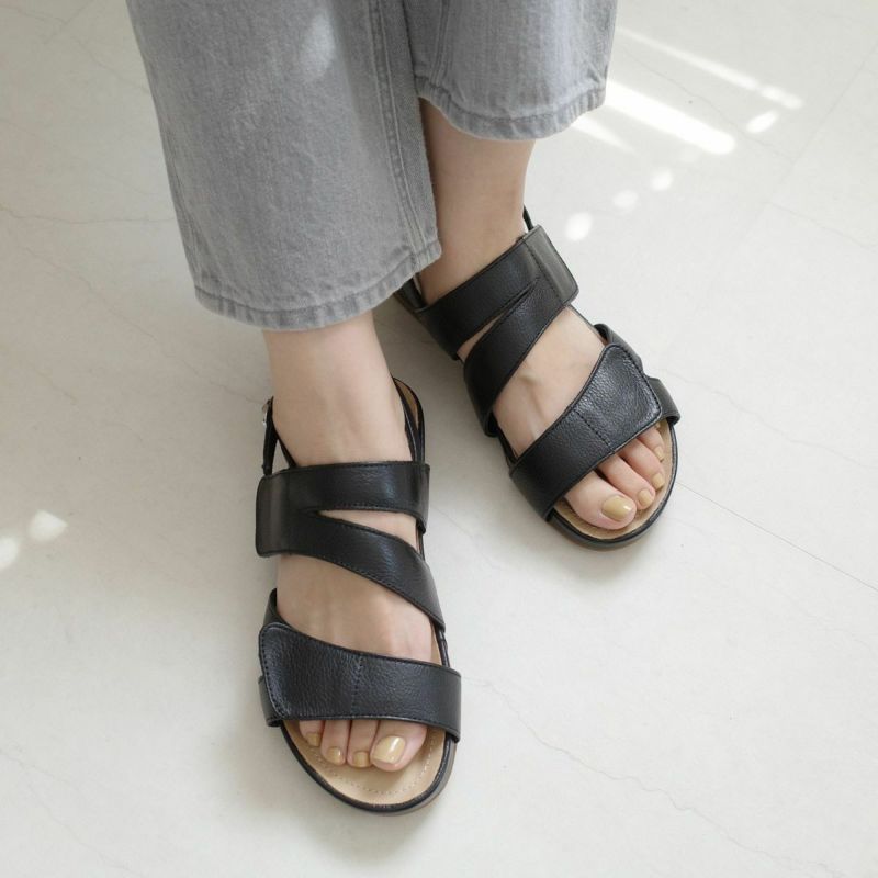 幅が緩いですが、甲ベルトをきつめに調整するとちょうど良く履けます。