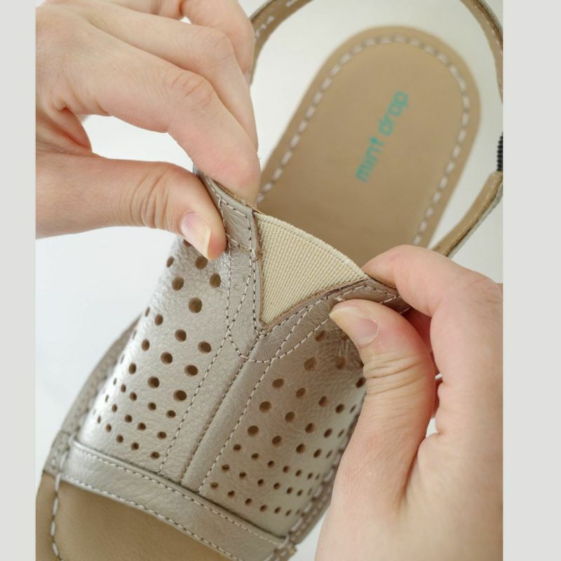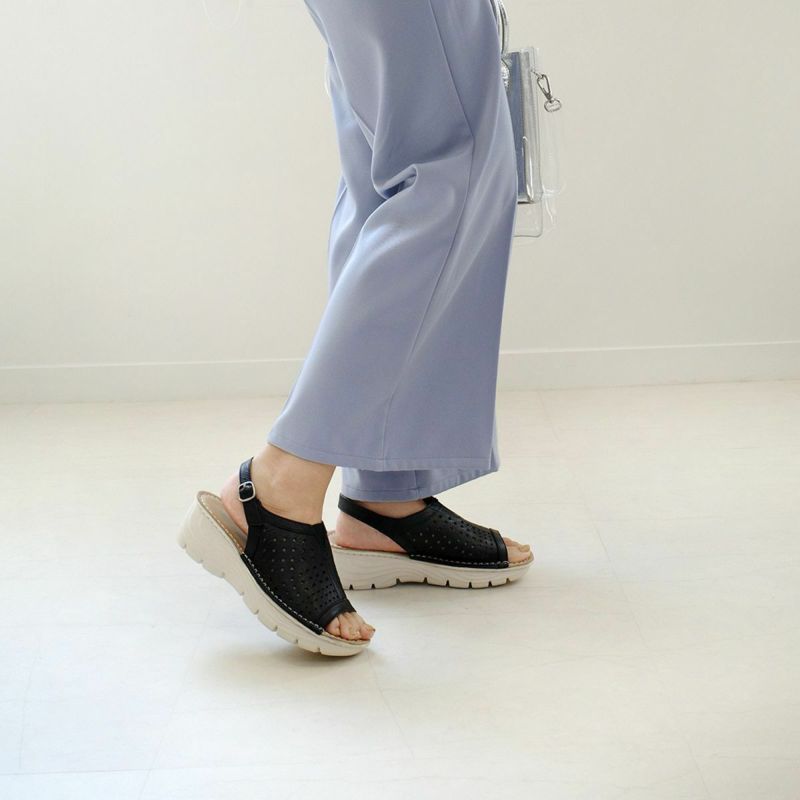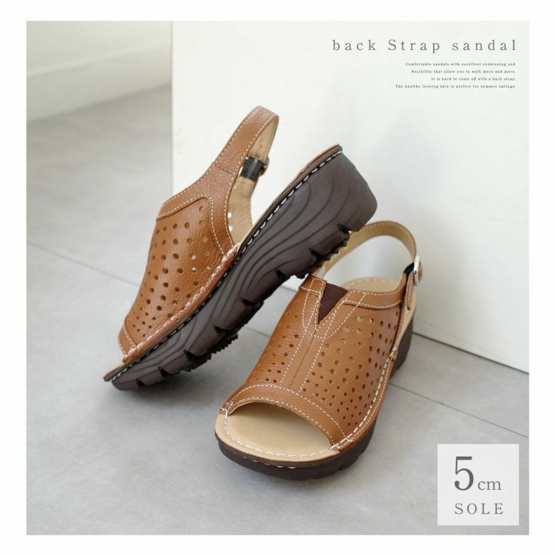 柔らかな本革が足に馴染むバックストラップサンダル。ぽってりしたソール&パンチングメッシュデザインのサボサンダル。