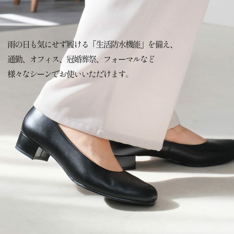 丸みのあるつま先と安定感のあるヒールで、幅広い年代の方にマッチするデザイン。