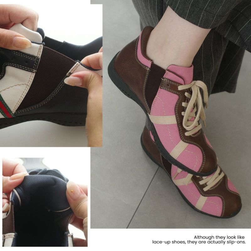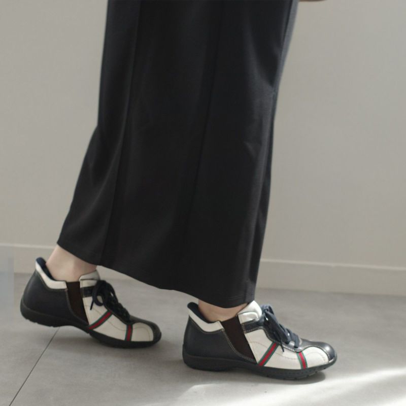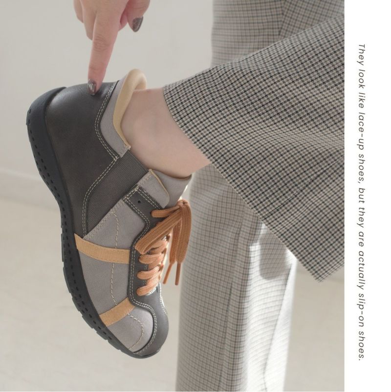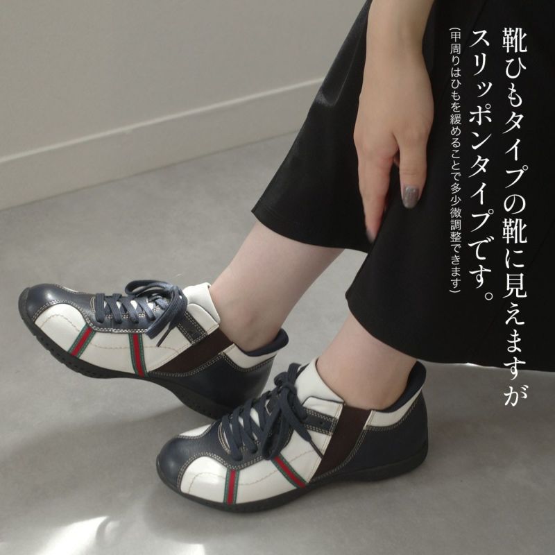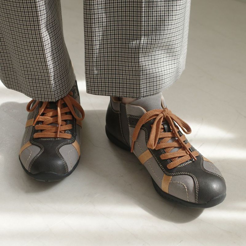 靴ひもタイプの靴の靴に見えますがほぼスリッポンです(甲周りはひもを緩めることで多少微調整できます)