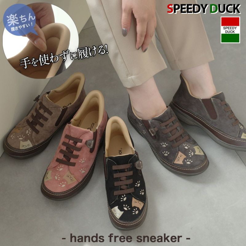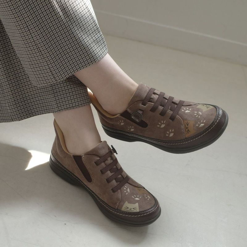 ハンズフリースニーカー猫猫柄猫デザイン レディース