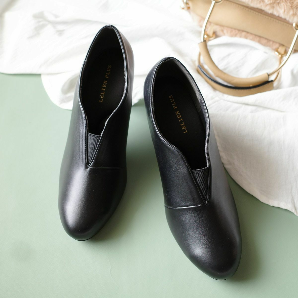 本革スクエアトゥパンプス レディース