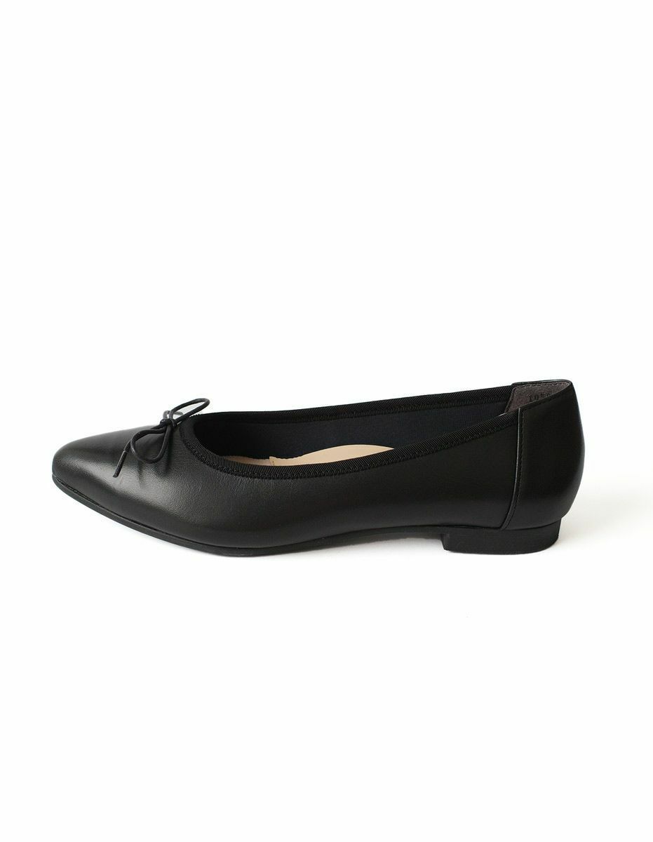 本革リボン付きスクエアトゥパンプス レディース