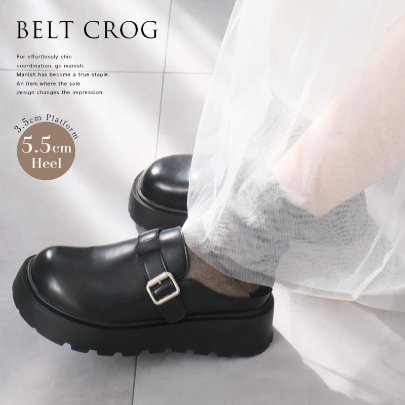 ボリューム感のある厚底ソールで自然にスタイルアップ。存在感のあるベルト×バックルがポイントで、どんなスタイルにも抜け感をプラス