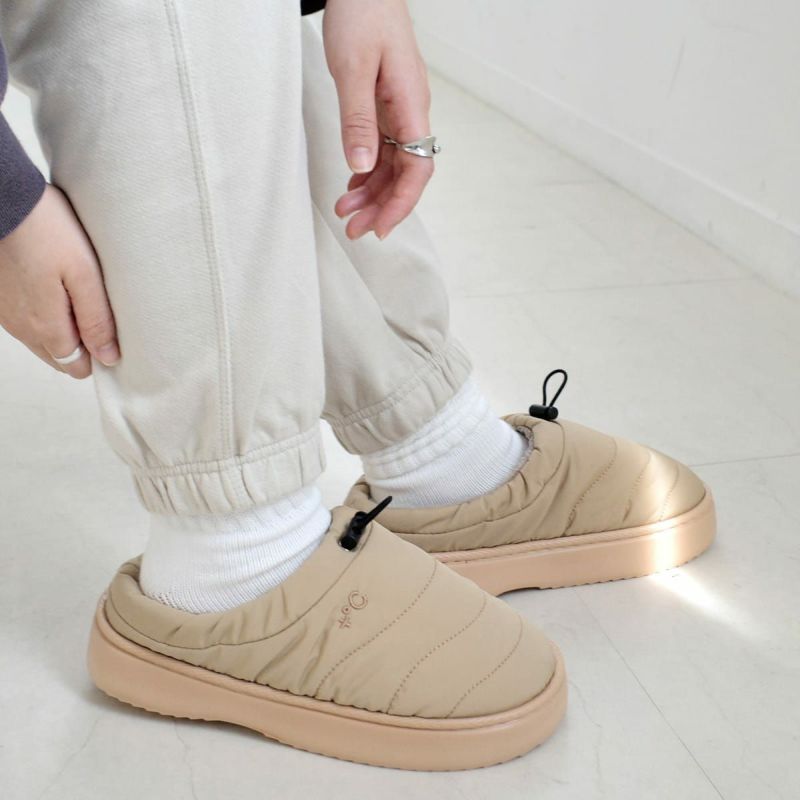 寒い季節にぴったりの、軽量で暖かい厚底ダウンサンダル