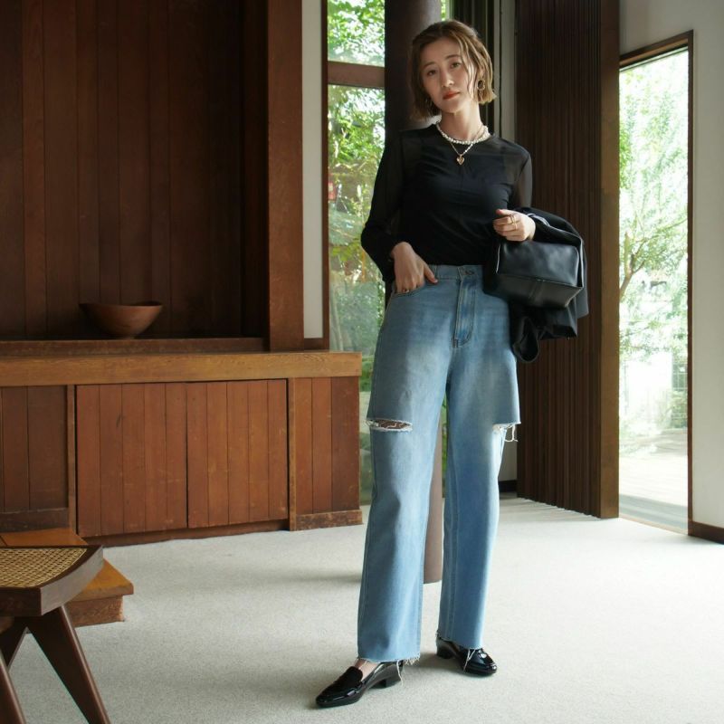 定番のコインローファーもスクエアトゥでトレンド感UP。