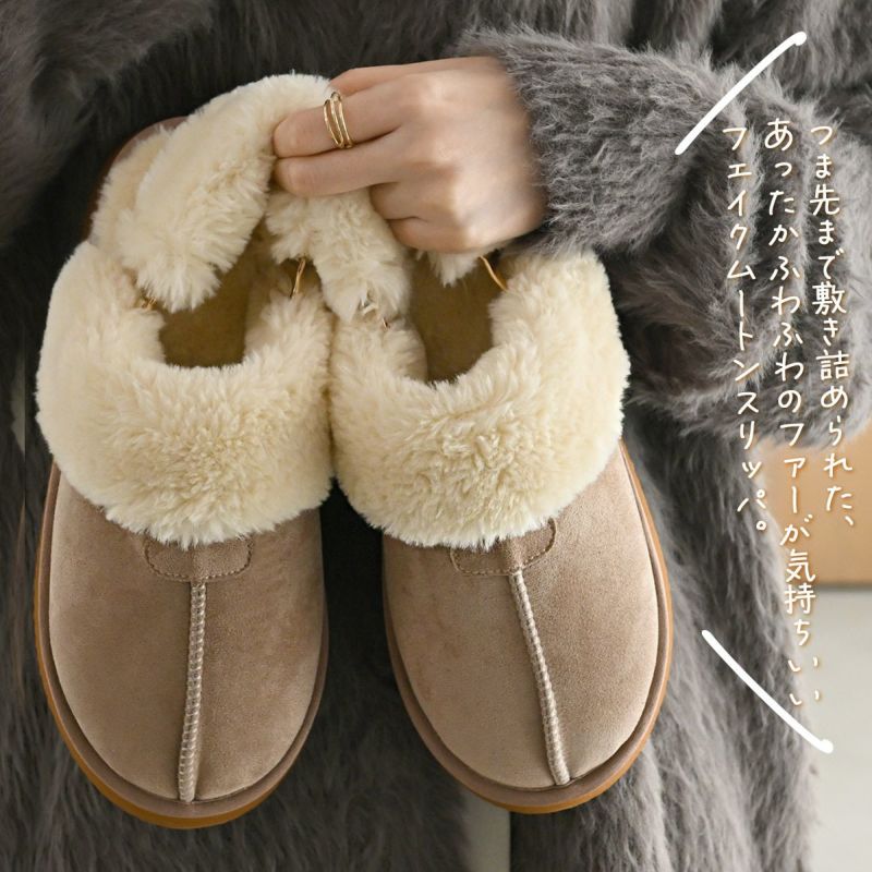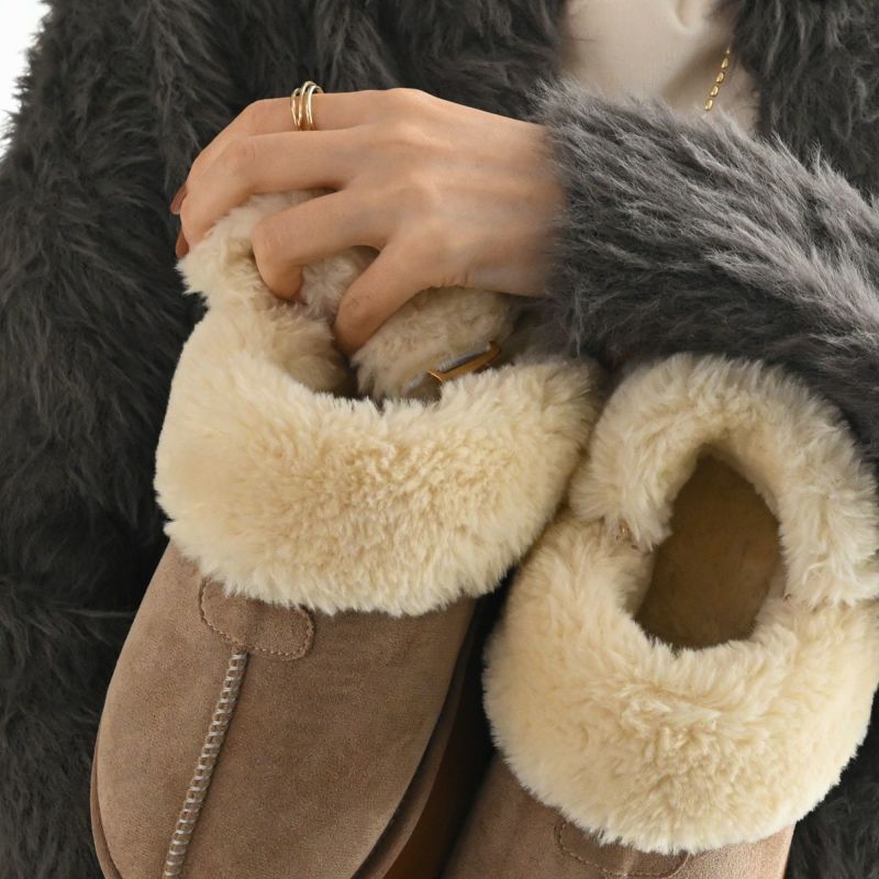 つま先まで敷き詰められたボリュームたっぷりのムートンスリッパ