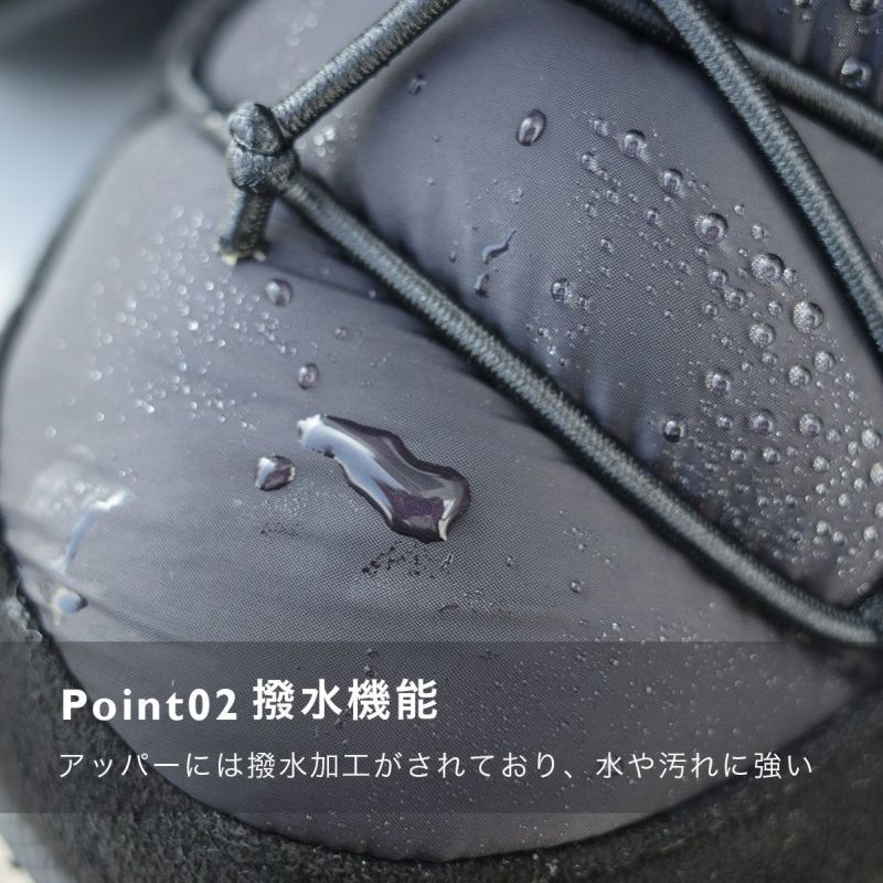 アッパーは撥水加工でしっかり水を弾き、お手入れも楽々。