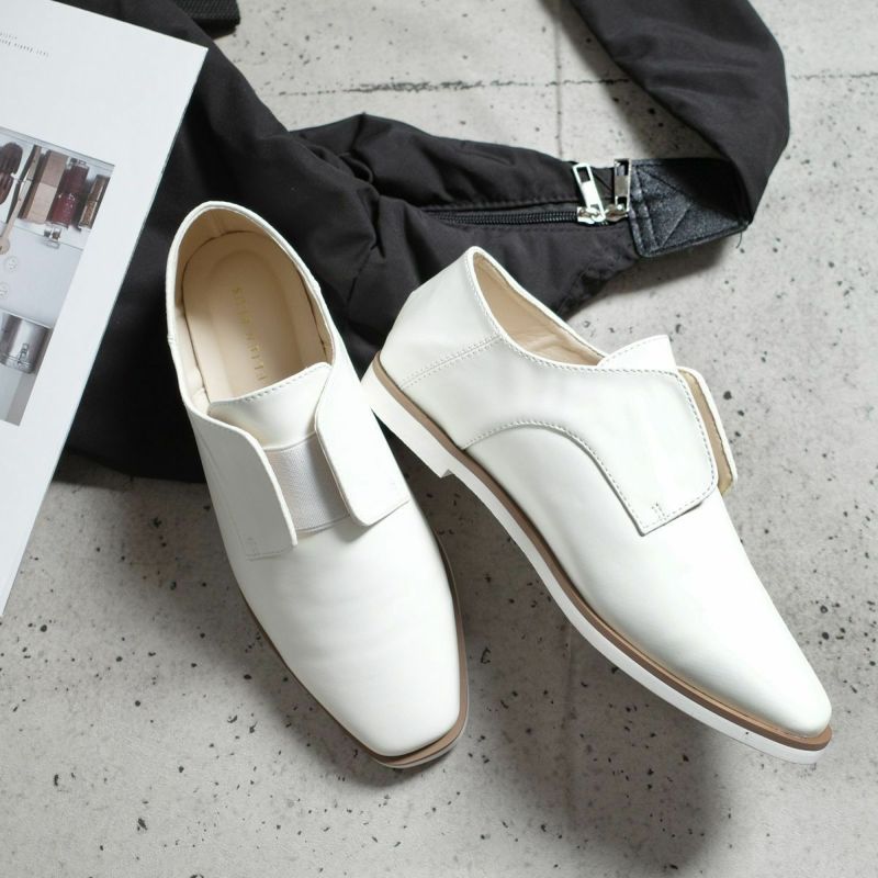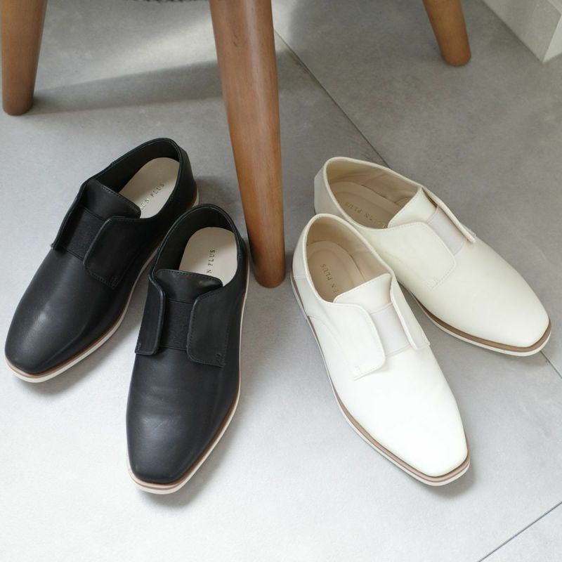 甲の部分はゴムになっており、スリッポン感覚で脱ぎ履きしやすい。幅広いコーデに合わせやすく、かっちりときれいめなスタイルにも、カジュアルなスタイルにも馴染みます。