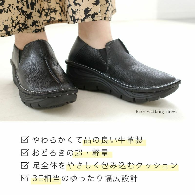 やわらかい牛革製&幅広さんも安心のウォーキングシューズ。
