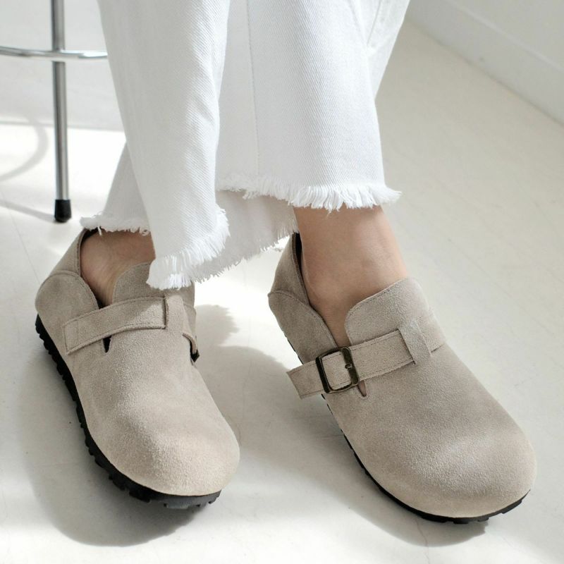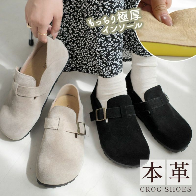 2WAY本革スエード靴クロッグシューズスリッポンバブーシュ レディース