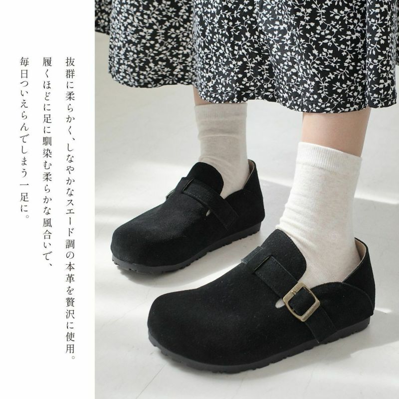 もっちり極厚のインソールが癖になる履き心地です。抜群に柔らかく、しなやかなスエード調の本革を贅沢に使用。
