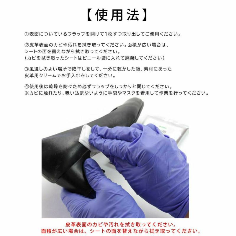 皮革製品に付着した菌や汚れを除去し、カビの生育を抑制する