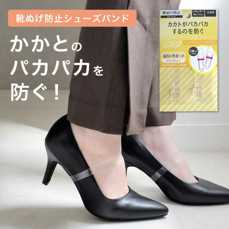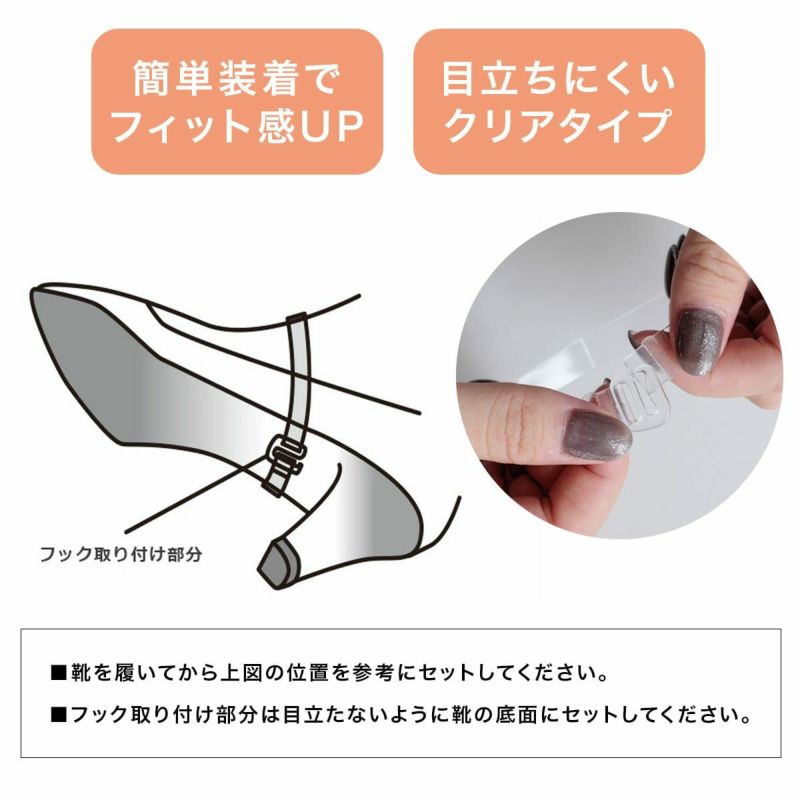 簡単装着で靴と足のフィット感を高め、靴脱げを防止します。クリアカラーで目立ちにくいのも嬉しいポイント。