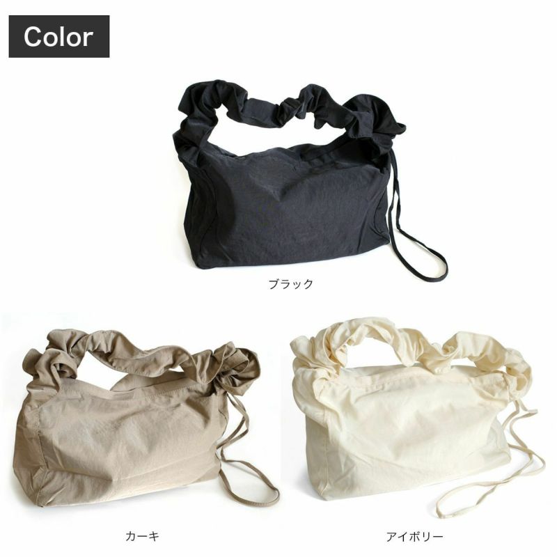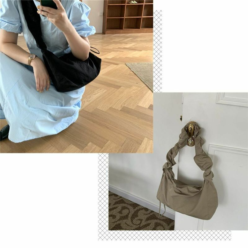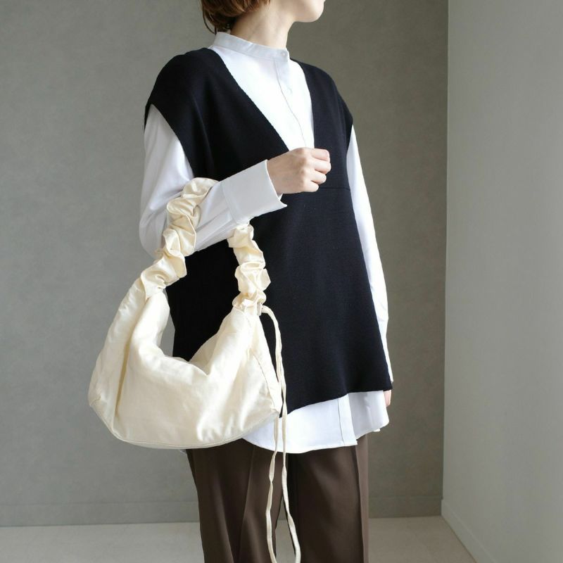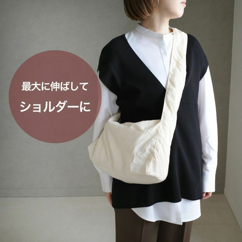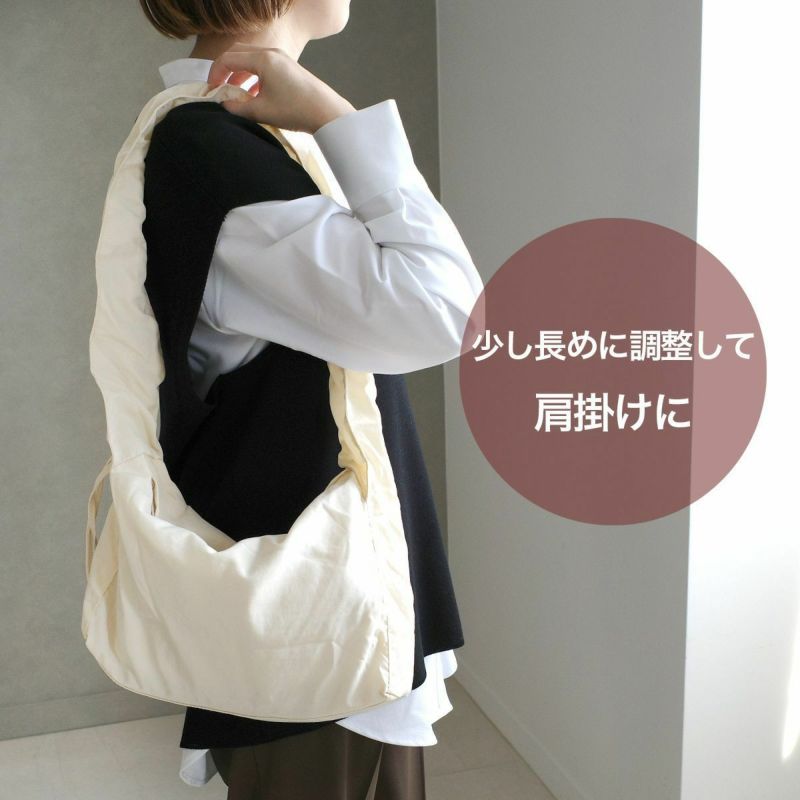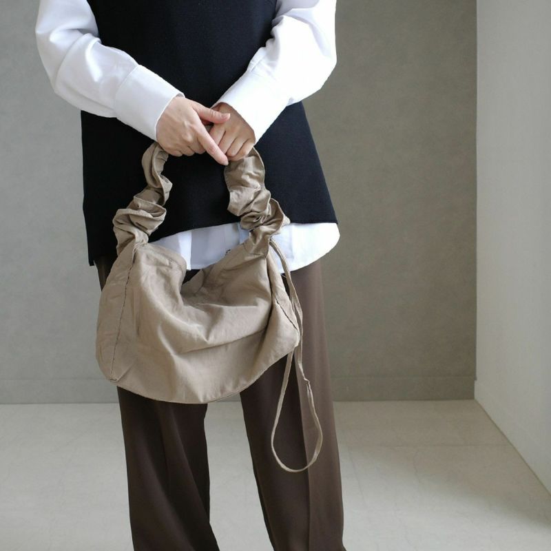 持ち手長さが変えられて色んな持ち方ができるくしゅくしゅバッグ