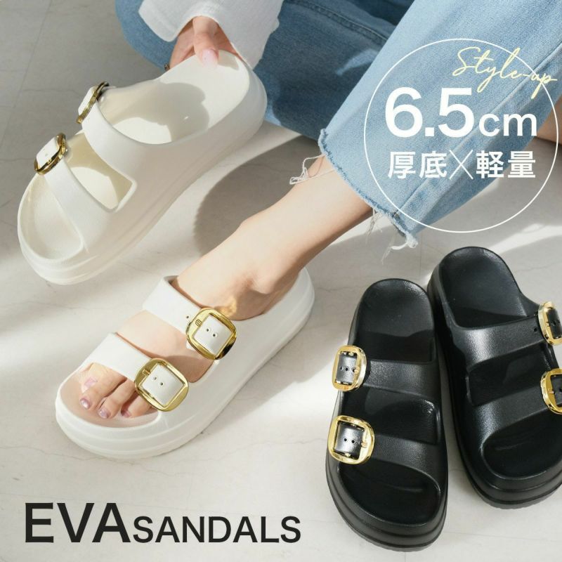 サンダルダブルベルトEVAサンダル軽量リカバリーサンダルシャワーサンダル厚底 レディース