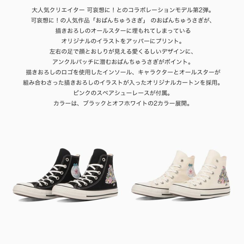 人気キャラクター「おぱんちゅうさぎ」が描きおろしのオールスターに埋もれたオリジナルイラストをアッパーにプリント。左右の足で顔とおしりが見える愛くるしいデザインに、
