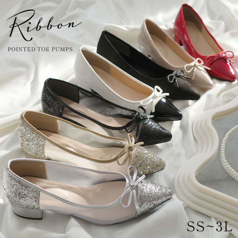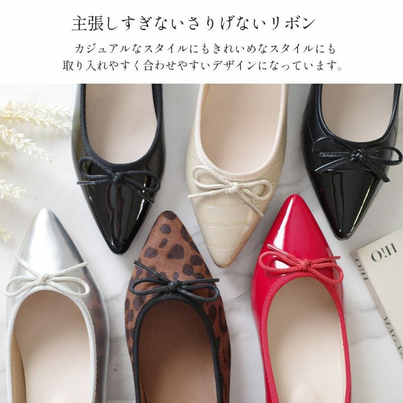 ポインテッドトゥリボンバレエシューズ レディース