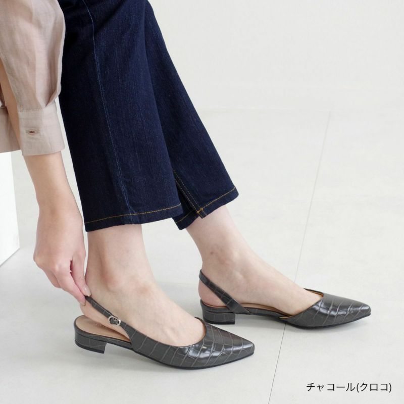 低反発インソールで、ローヒールなので歩きやすい、ポインテッドトゥなので大人っぽくキマりますカジュアルにもフェミニンにも使える。