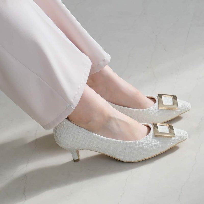 ホワイト(ツイード)×バックル
