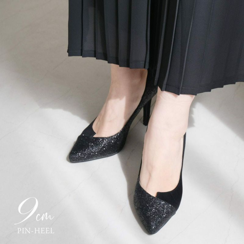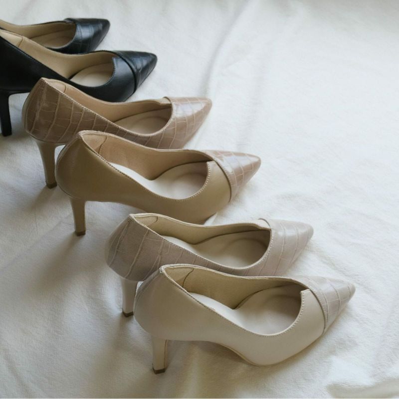 すらりとしたつま先と切り替えデザインが足元にアクセント華奢なピンヒールが脚をキレイに魅せてくれます。