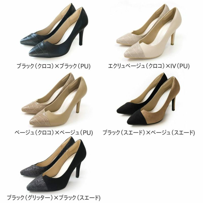 バイカラーポインテッドトゥハイヒールパンプス9センチピンヒール レディース