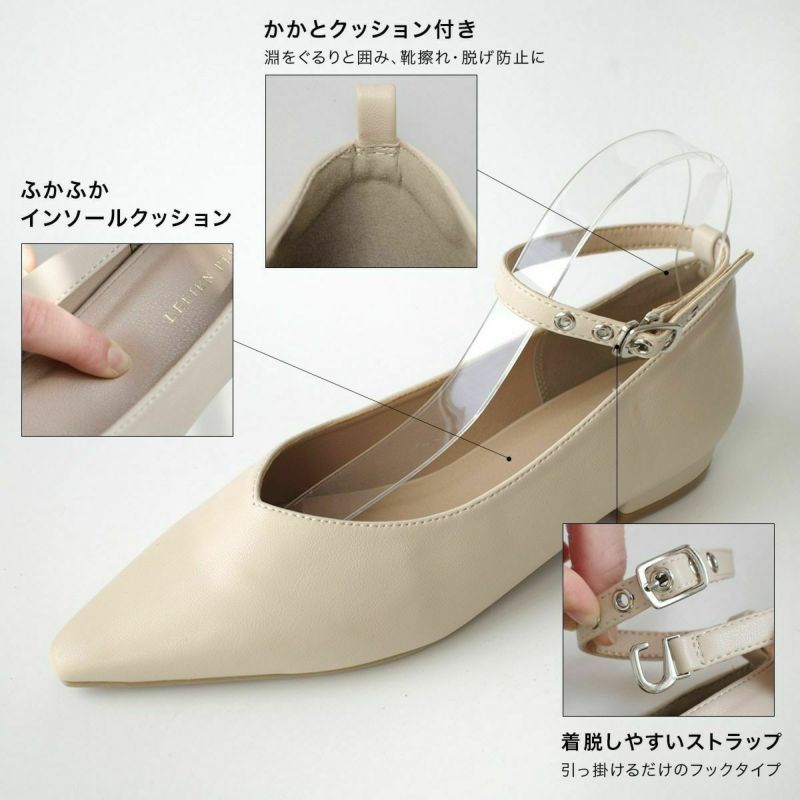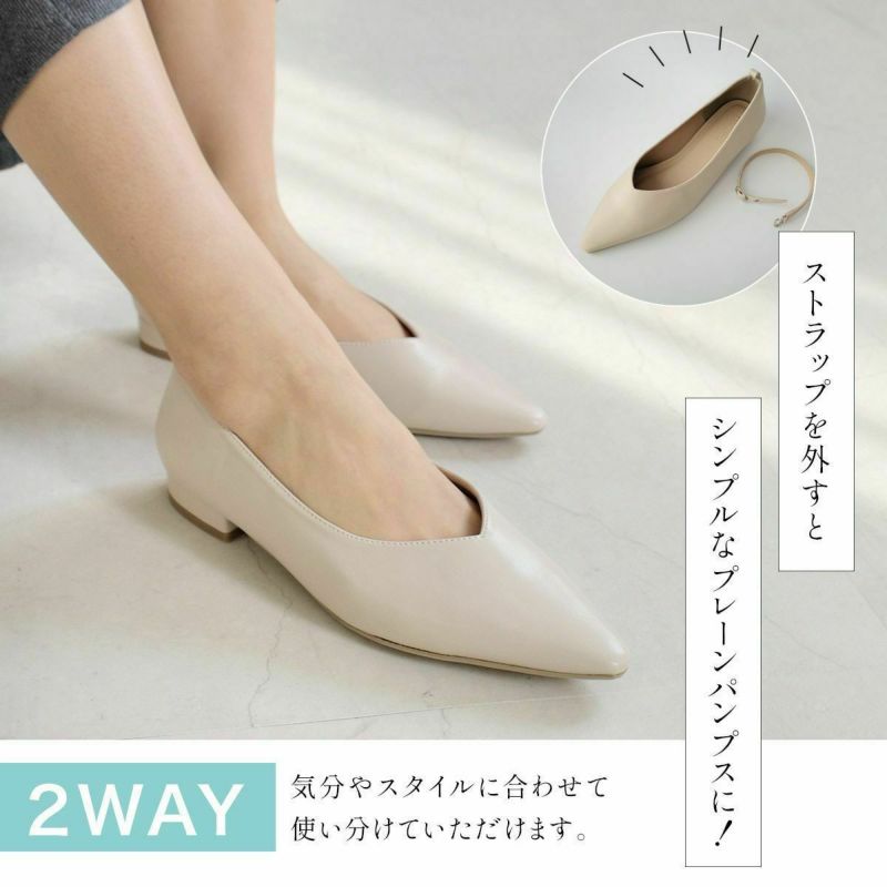 シルバーのハトメをストラップに落とし込むことで、ハードになり過ぎずにコーデに取り入れやすい◎ストラップを外すとシンプルなプレーンパンプスとしても履けるので、気分やスタイルに合わせて使い分けていただけます。