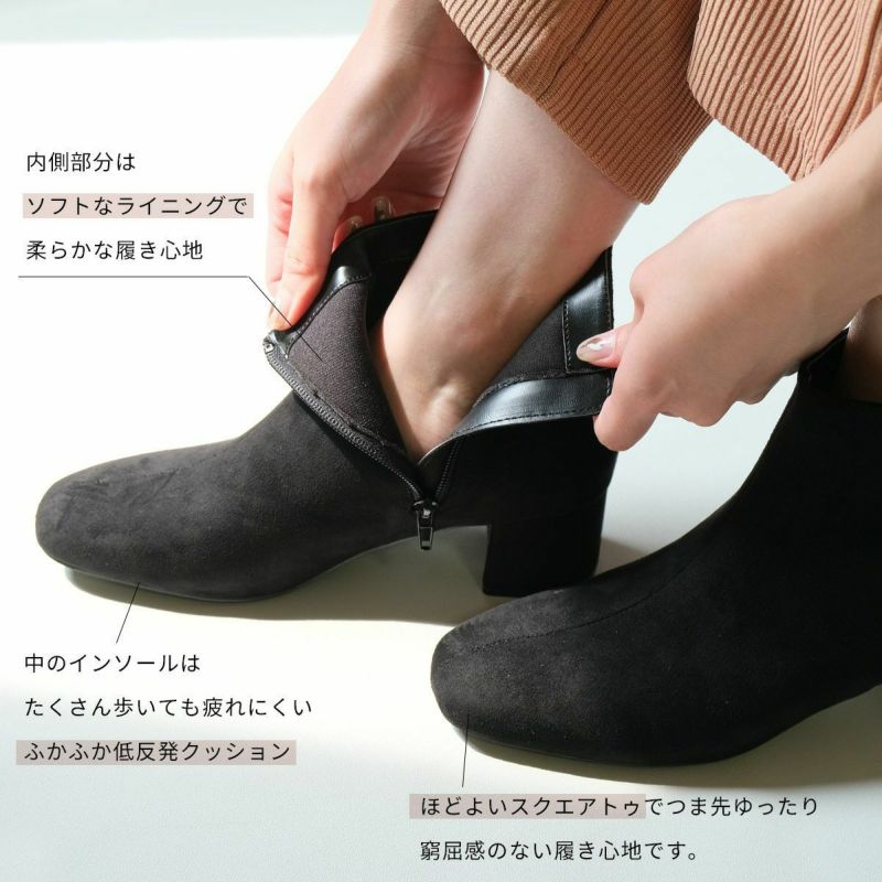 サイドジップ付きで脱ぎ履きがスムーズ!高すぎないヒールは安定感のあるトレンドのチャンキーヒールを採用し、