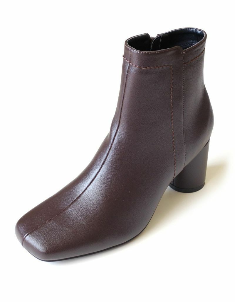 【在庫限り!特別価格!】スクエアトゥショートブーツ円柱ヒール レディース
