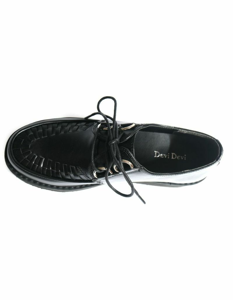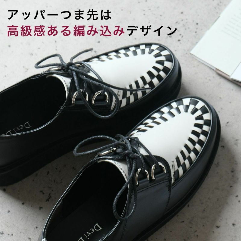 アッパーは高級感のある編み込みデザインで足元アクセントに!