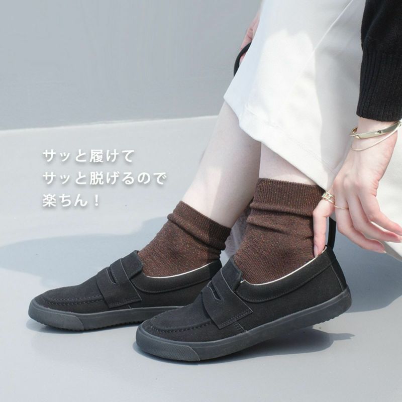 どんなコーデにも合わせやすいシンプルさで使い勝手バツグン!履き口はクッション仕様でやさしい足当たり。