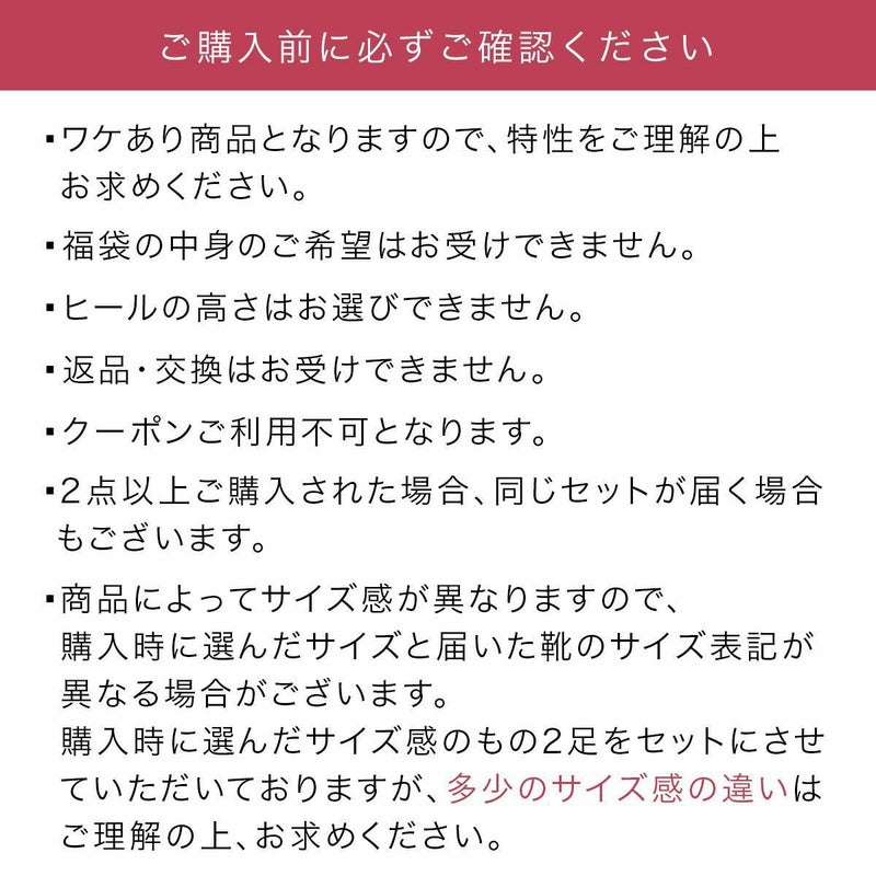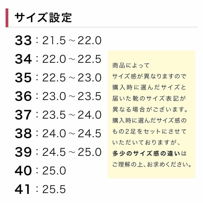 購入時に選んだサイズ感のもの2足をセットにさせていただいておりますが、多少のサイズ感の違いはご理解くださいませ。