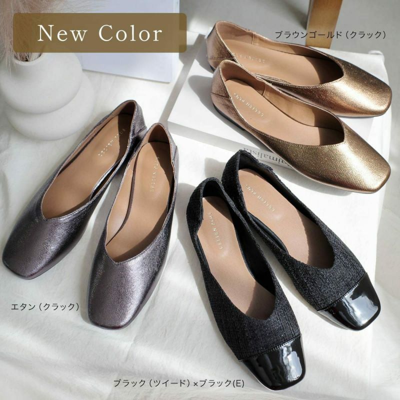スクエアトゥで大人っぽくきまる!柔らかく、気軽にさっと履けて使いやすいフラットパンプス。