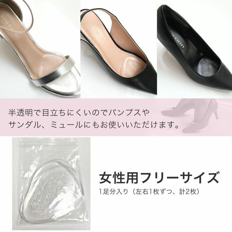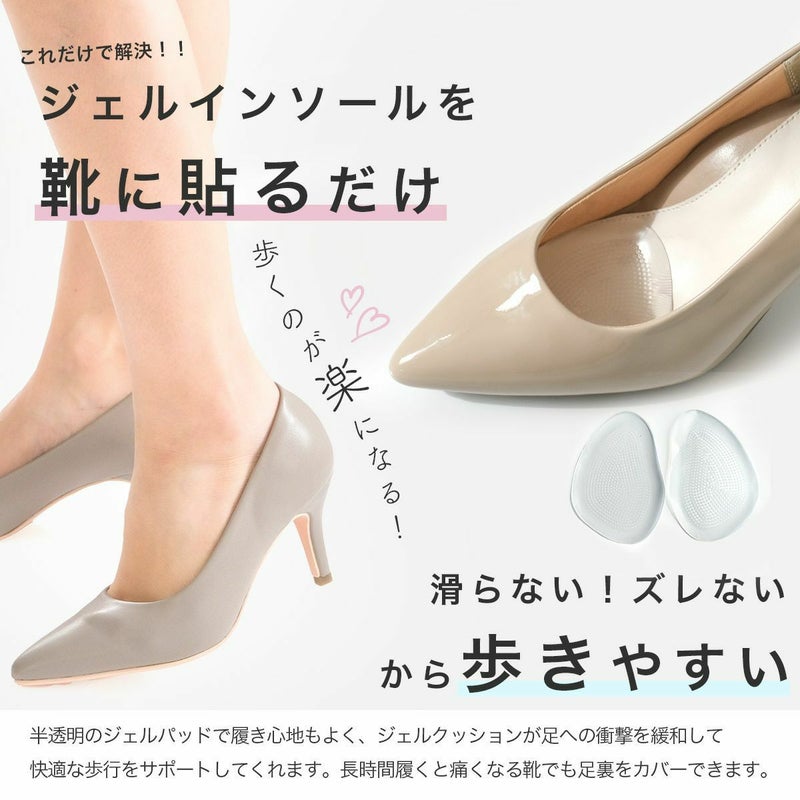 前滑りを防止して衝撃吸収効果の高いクリアジェルクッションつま先用インソール足裏の痛い方にオススメインソール 中敷き 前ずれ予防 コンフォート クリアジェル サンダル ミュール パンプス