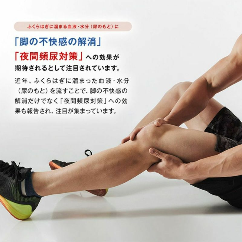 やさしい履き心地の綿混素材。ふくらはぎに溜まる血液・水分(尿のもと)を流すことで、脚の不快感の解消だけでなく、