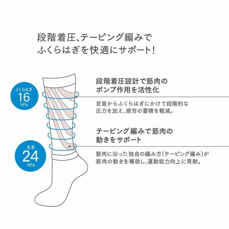段階着圧、テーピング編みでふくらはぎを快適にサポート!
