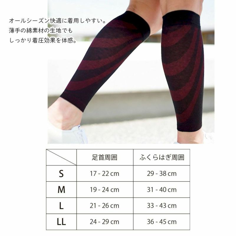 ■サイズ: Sサイズ:足首周囲17-22cm/ふくらはぎ周囲29-38cm Mサイズ:足首周囲19-24cm/ふくらはぎ周囲31-40cm Lサイズ:足首周囲21-26cm/ふくらはぎ周囲33-43cm LLサイズ:足首周囲24-29cm/ふくらはぎ周囲36-45cm