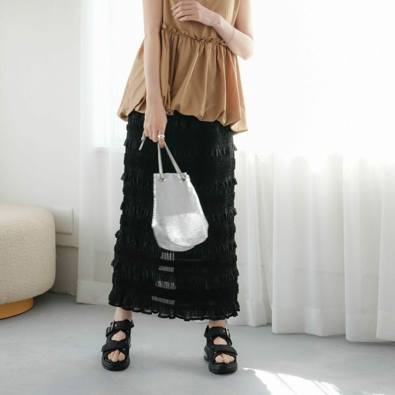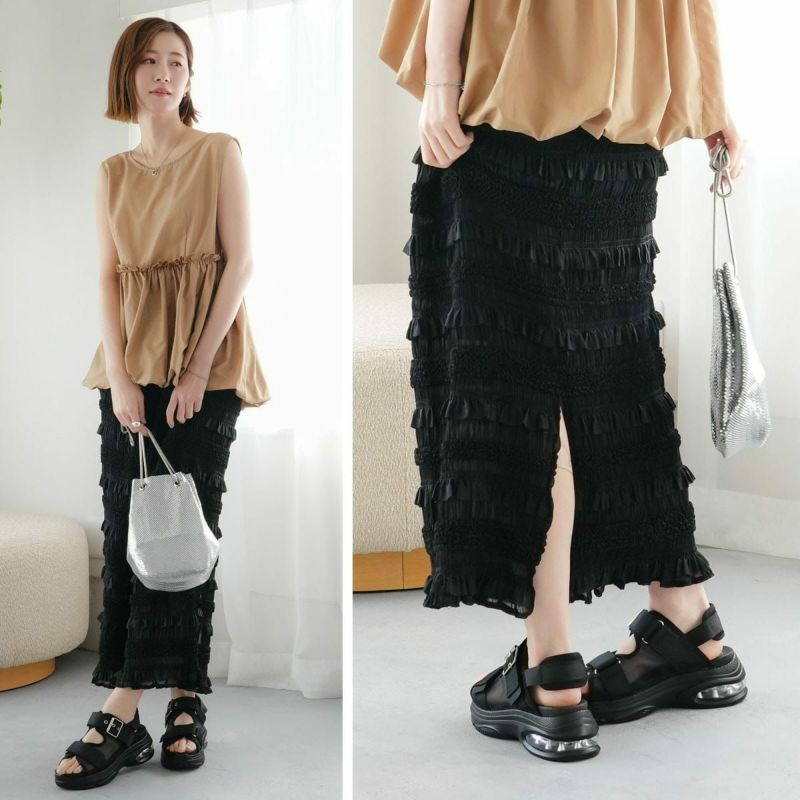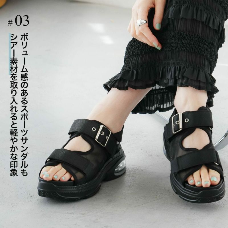 ボリューム感のあるスポーツサンダルもシアー素材を取り入れると軽やかな印象